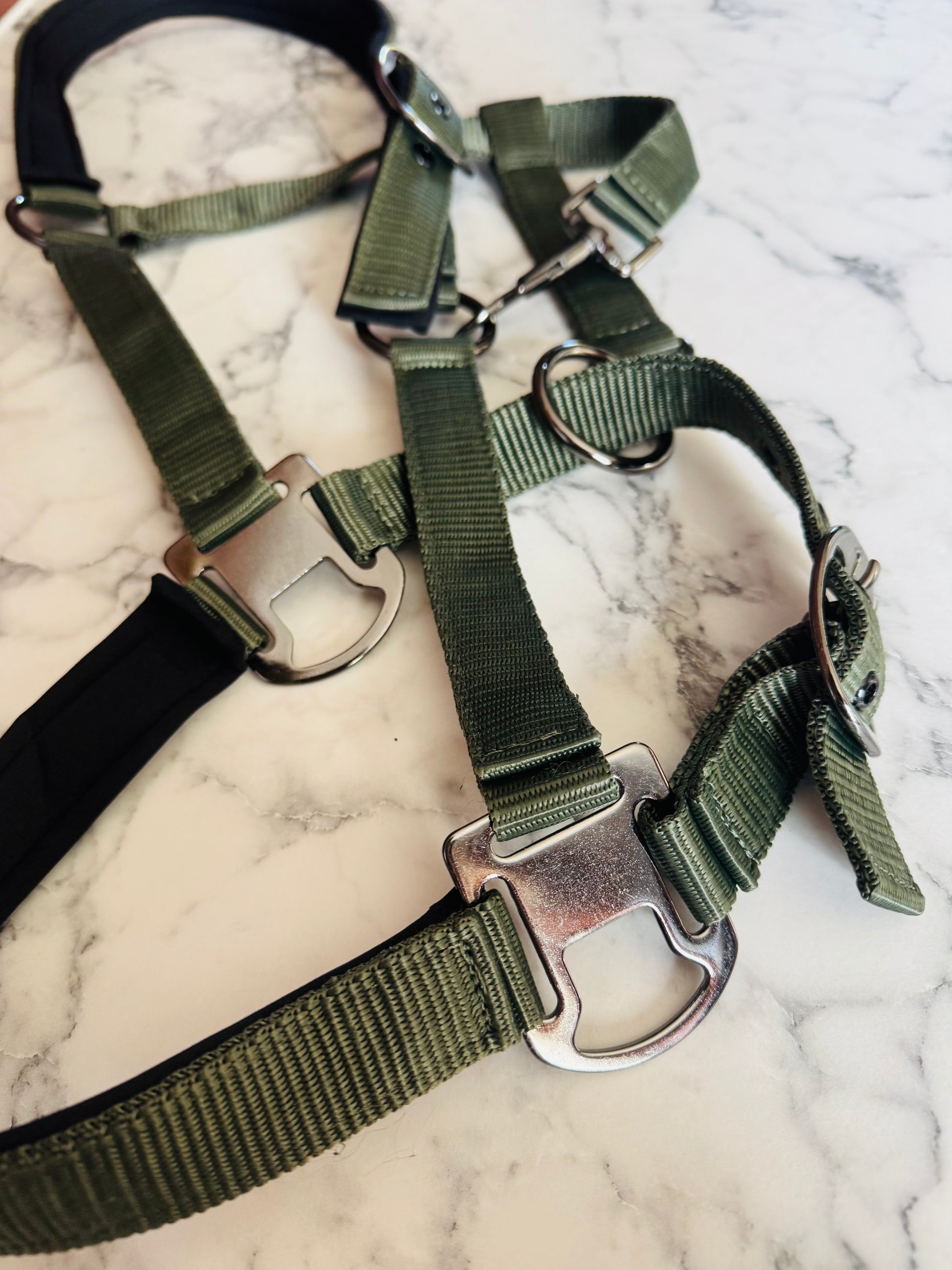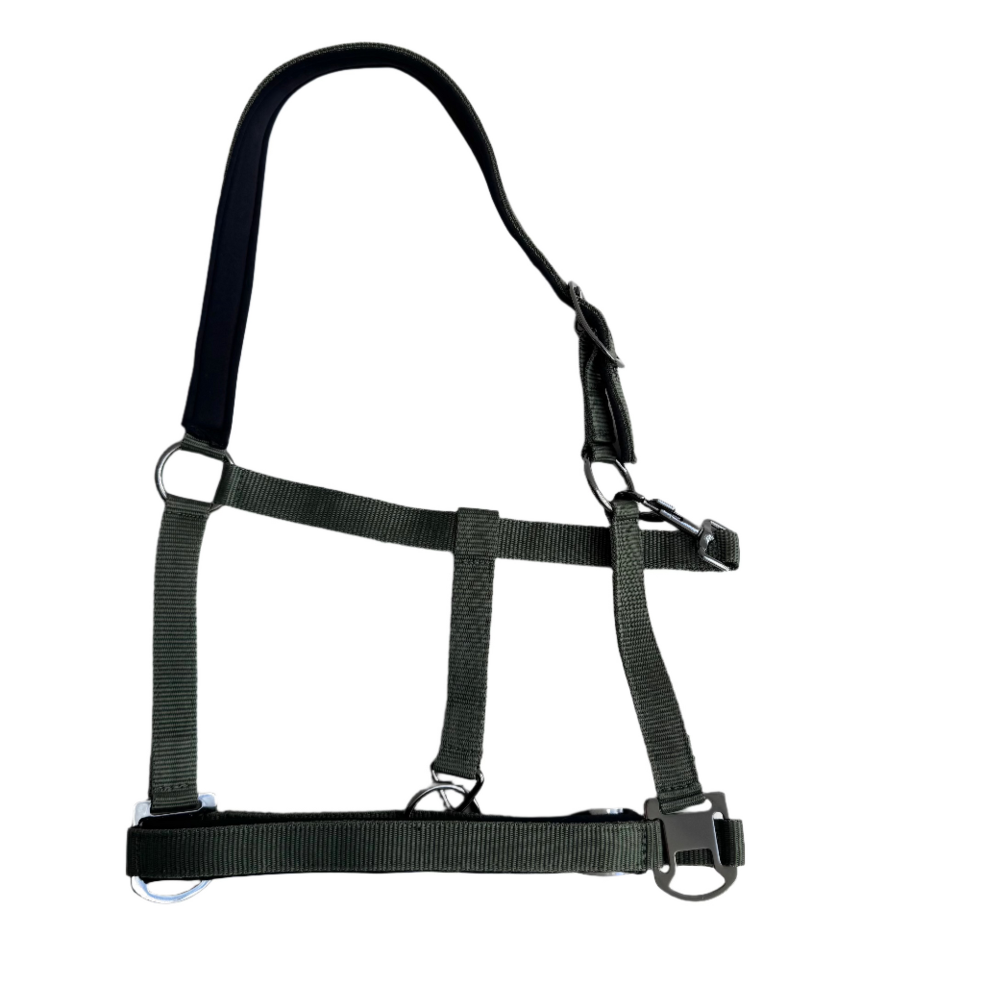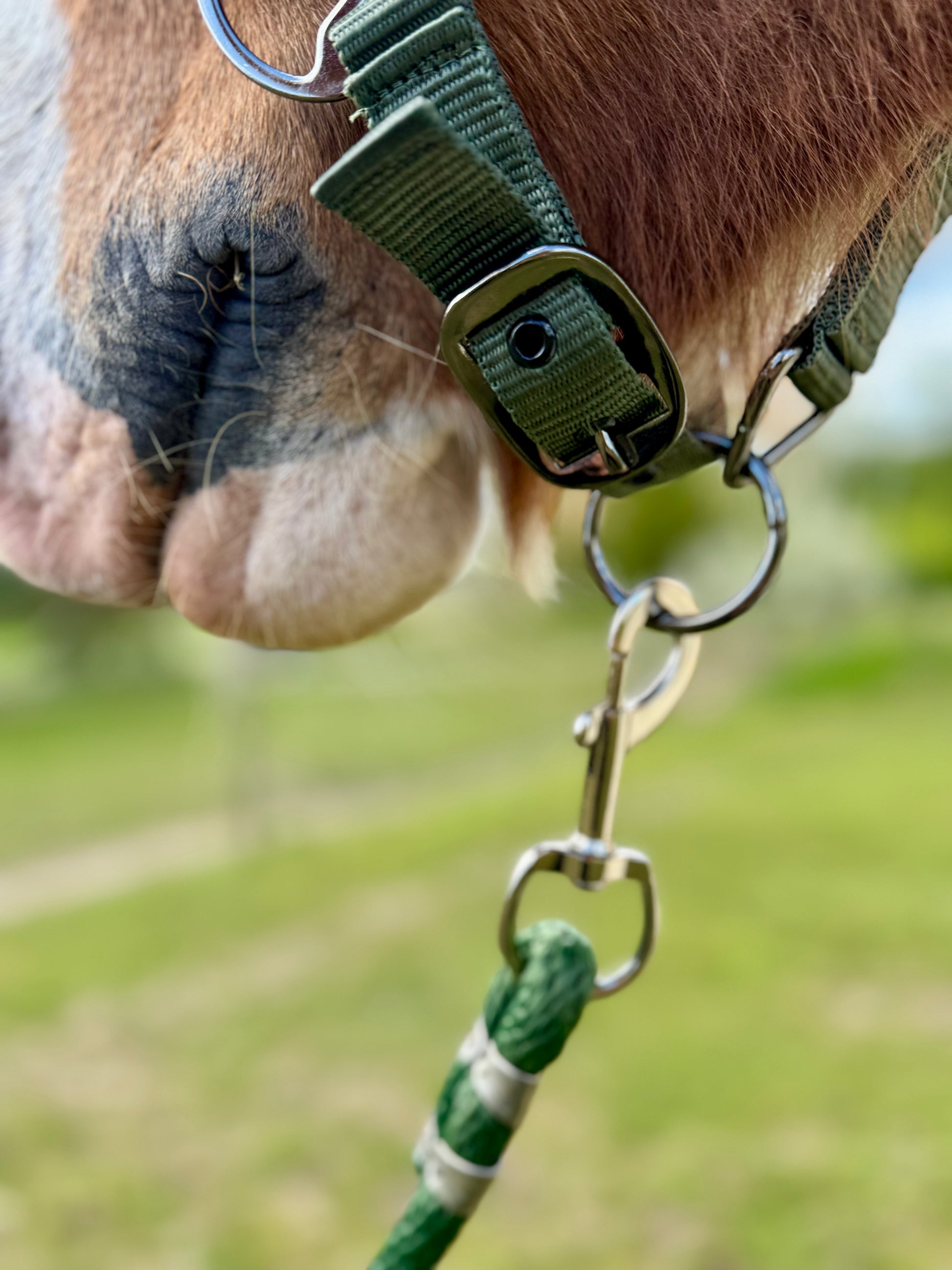 Raffineret design: Spænderne på grimen er elegant udført i en mørk chromfarve, der tilføjer et touch af raffinement til hestens udseende. Dette gør grimen ikke kun funktionel, men også en stilfuld tilføjelse til din hests udstyr.